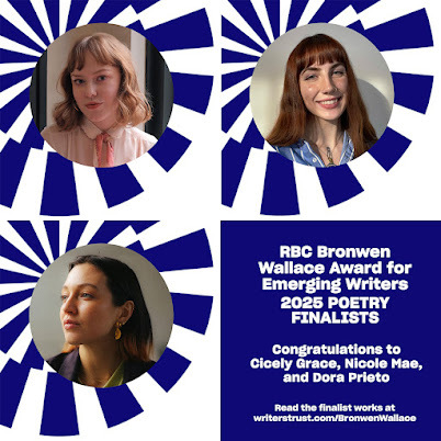 , I've spent the past few weeks working interviews with the three shortlisted poets for this year's RBC Bronwen Wallace Award for Emerging Writers, poetry category, as run by the Writer's Trust of Canada, all of which have now posted--