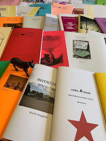 Terri Witek, DOWN WATER STREET $6 ; R. Kolewe, Tierra del Fuego (excerpts from a fiction) $5 ; Jason Christie, PSA $6 ; Micah Ballard, A N G E L D U S T $6 ; Monty Reid, cuba A book: twentieth anniversary edition $6 ; Tom Jenks, Chimneys $5 ; Orchid Tierney, pedagogies for the planthroposcene $5 ; Brook Houglum, INVENTORY $5 ; Meredith Quartermain, Things Musing $5published in Ottawa by above/ground press