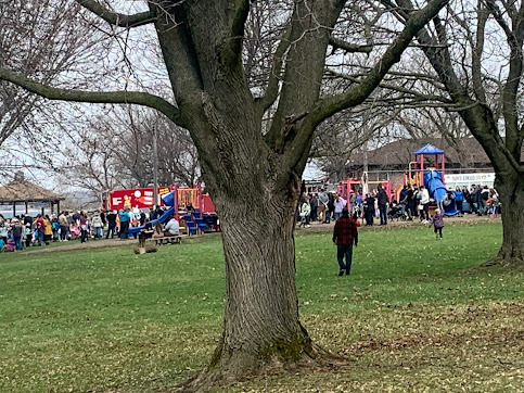 Aoife had fallen to a slight fever prior to Rose, but had felt better, neither of them slowing down until they finally began to, slowly, do exactly that. By Friday evening, both lapsing back into slight fevers, but a quiet morning before an Easter Egg Hunt, in North Port, a small village some twenty minutes or so drive north of Picton, some distance west of the south landing of the big scary bridge. The whole village and environs, it would seem, had landed, with dozens of cars lining the main road, with easily one hundred scattered children with baskets seeking treasure from the park and various yards. The whole town, and the fire department, with trucks and equipment and snacks and a mascot. And every child left there with a basket of plenty of somethings.
