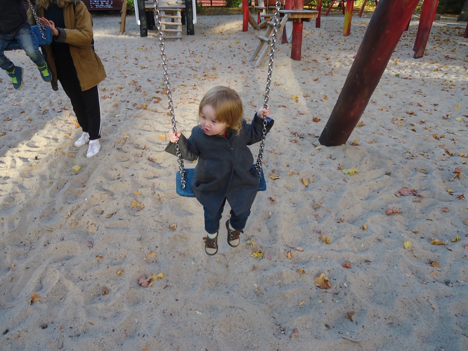 At the previous day's park, the toddler swing had disappeared, forcing us to utilize the 'big girl' swing, which she enjoyed for the first time.