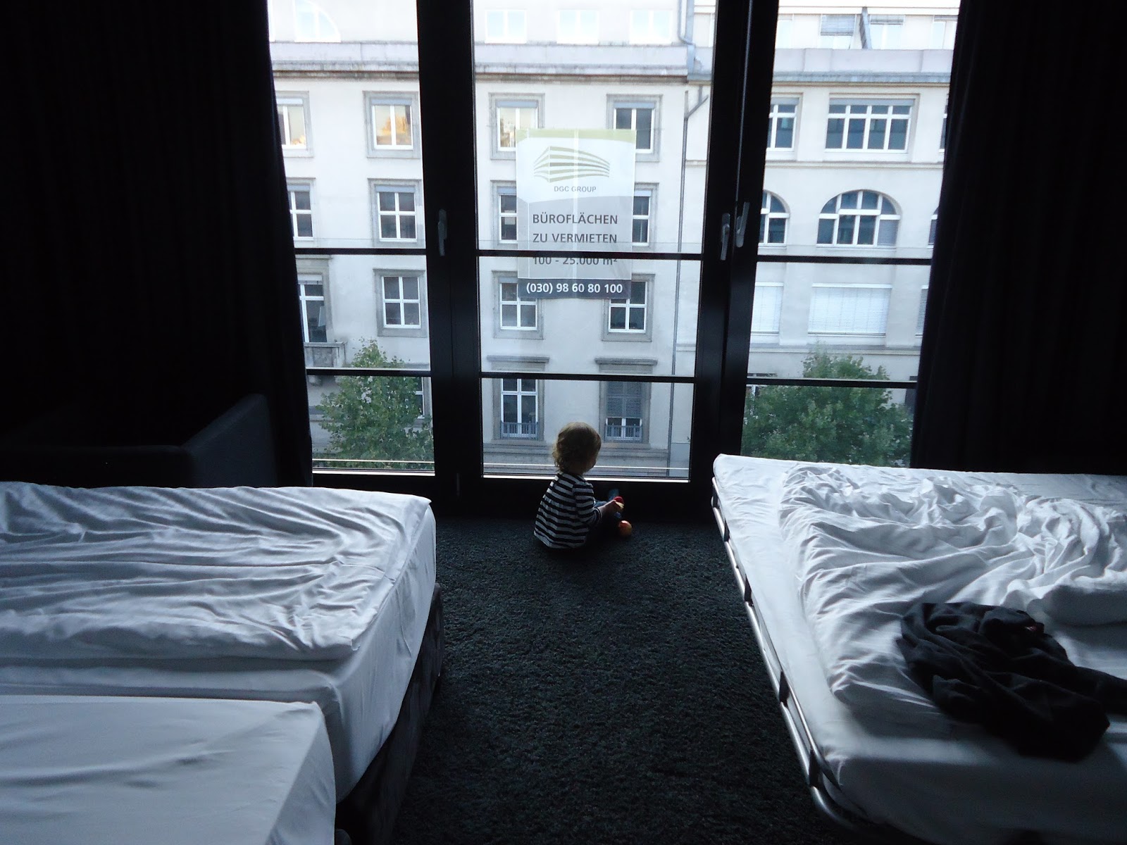 A week in Berlin, for the sake of a work-related conference on conservation (book, paper, etc) Christine is attending. Eighteen hours from Ottawa door to Berlin hotel, including: a stop-over in Frankfurt, and Berlin cab drivers we weren't able to communicate with. Apparently cab drivers can't take wee children without carseats (which we eventually did understand), but didn't bother relaying (either cab driver we spoke to) that one can order a cab with a carseat. They moved on, leaving us standing on the corner with our many bags and sleeping child. Two buses later, a protest blocked us, and we rode two subway trains before a walk finally saw the front doors of our hotel. Two hours from airport to hotel, and we were dead tired. Mid-afternoon, and barely a wink of sleep in twenty-four hours. We crashed. Or at least, we attempted to crash.
