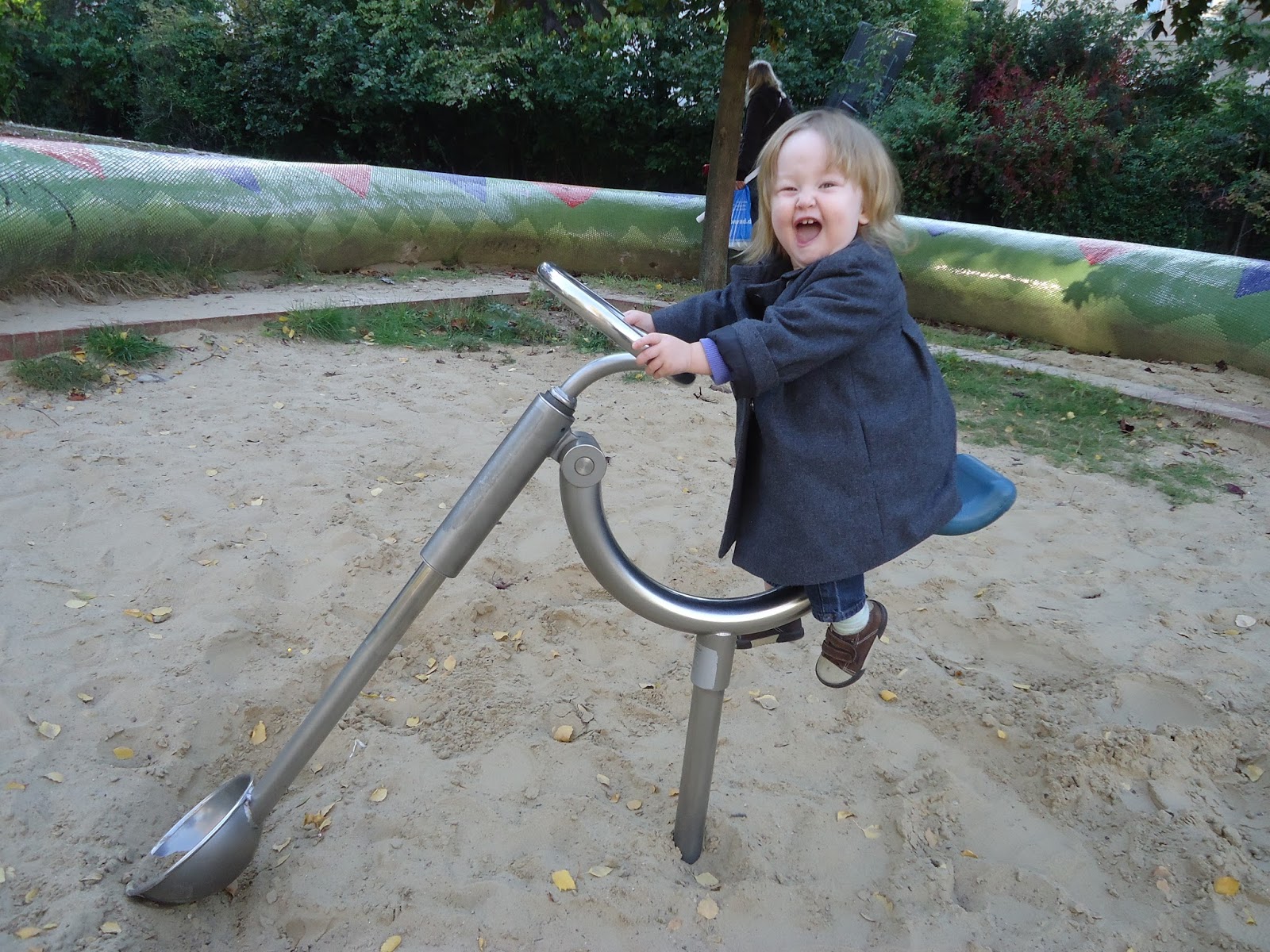 Monday, October 12, 2015: As Christine began her conference, we attempted to find things for the young lady to enjoy, including Kurt-Hiller-Park, another park near our hotel, and park named for writer Kurt Hiller (1885-1972). Are all parks in Berlin named after writers? Marvellous!Not exactly the best park for the sake of things to entertain the wee lass (this was the highlight, and not exactly a 'ride,' per se: but there was a cool green-coloured concrete snake circling the entire sand patch).