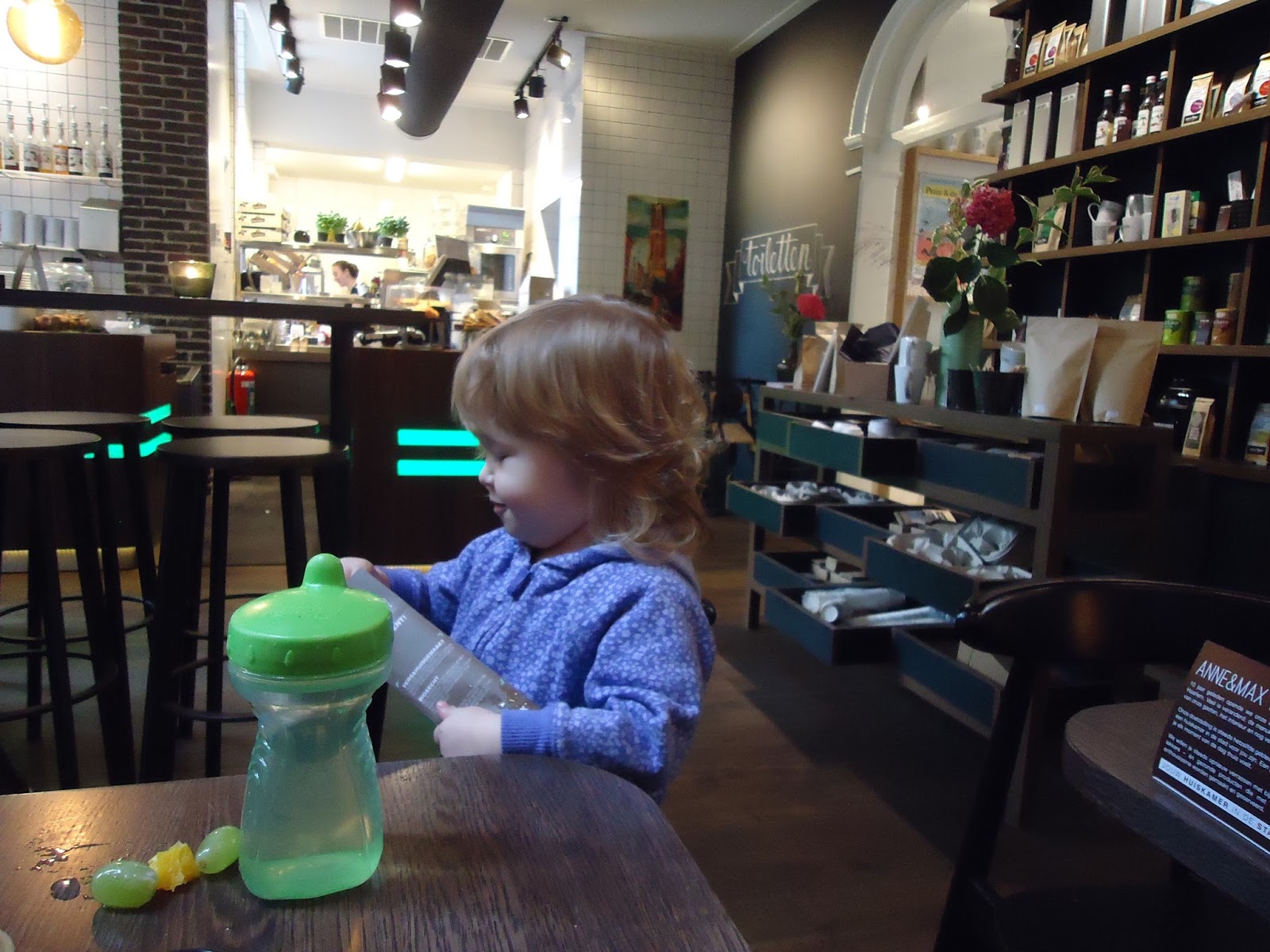 Saturday, October 17, 2015: We flew the hour to Amsterdam from Berlin [you've already read the report of our week in Berlin, haven't you?], before catching a two-hour train to Groningen, where Christine's friend (and bookbinder) Natasha Herman lives. She, and Netherlandic husband and two sons, lived in Ottawa a couple of years back, and we even house-sat for them when they lived on Sunnyside Avenue, in Old Ottawa South (the square house with all the windows: if you know the street, you already know the house).After a two-hour train, Rose was really losing her patience. "I no want ride train anymore," she repeated, after a small series of meltdowns, before she finally crashed out cold, some fifteen minutes before we landed in Groningen. Natasha was good enough to pick us up at the train station, so we didn't have to (yet) learn where anything was, in a strange city with sleeping toddler and too many bags.