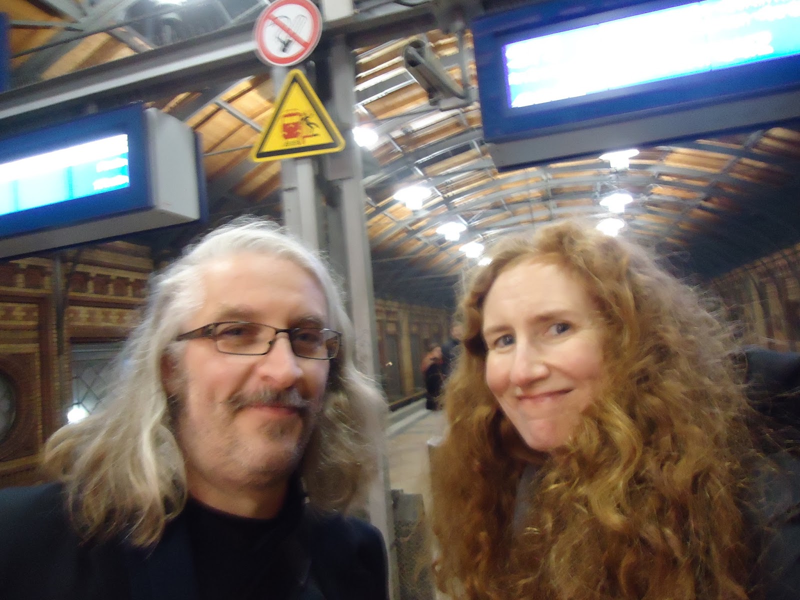 [post-drinks, in the train station nearing midnight, a selfie with Donna Stoneciper] Later in the evening, I was able to meet up with the utterly charming American poet and expat Donna Stonecipher, who has lived in Europe for much of the past two decades, in Berlin for much of the past decade. We met up on the former East Berlin side of the scar-once-wall, and she showed me some of the differences, still, between. There was the former squat, various Jewish graveyards, and the remnants of other remnants. Some buildings were new, but others hadn't really been kept up in years, and the bar where we had drinks was dark, smoke-filled, and covered with a post-wall graffiti that remained, deliberately, as a reminder of what was. She showed me plaques on the cobblestone, each with the name of the Jewish dead who had lived in the adjoining apartments, and the dates and locations where they had been killed. A powerful and remarkable acknowledgement of an incredibly painful history.Donna and I traded books, and stories; we know far too many of the same people. Taking four trains to meet her, she showed me how to take only two home, and I made it in half the time.