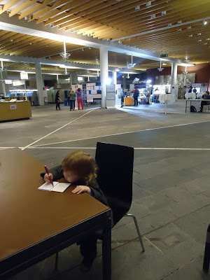 By later afternoon, we braved the cold again to meet up with Christine at her conference (XIII IADA Congress: the International Association of Book and Paper Conservators), and Rose drew pictures as we waited.Heading over to Potsdamer Platz, we discovered the Mall of Berlin (really?) where we dined on German fare in their food court.