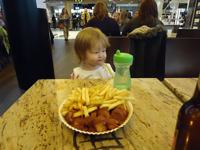 Post-nap, given Christine gave us a handful of money, Rose and I headed off to the Mall of Berlin for a repeat of the previous night's dinner, and frozen yoghurt, which made her clap and clap and clap. Ice cream! she yelled.She ignored the sausage, and we both ignored the McDonalds (ugh) behind us. And then, the main purpose to our outing: LEGOLAND DISCOVERY!