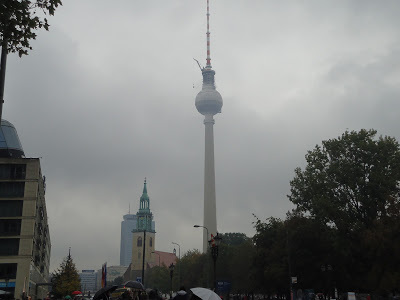 Sunday, October 11, 2015: Our first full day in Berlin made a bit more sense. We wandered some, including just south of our hotel, which ended up being a very cool building, the Kammergericht, and adjoining playground. The park was even named after a poet, although one of the German Romantic ones that eventually took his own life (after taking the life of his terminally-ill partner, at her request).I've heard Berlin a haven for children, and we've seen enough parks and playgrounds to believe it, although numerous ones have been attached to apartment buildings, or even the rare public one that looks really, really sketchy (Rose and I found some people sleeping in an early morning park, one overrun with graffiti as well). The playground structures were impressive, and for children a bit older than Rose, but she and I climbed up to the top of one (some three storeys up, I'm sure) for the sake of the slide (Christine got some good pics she posted to facebook).