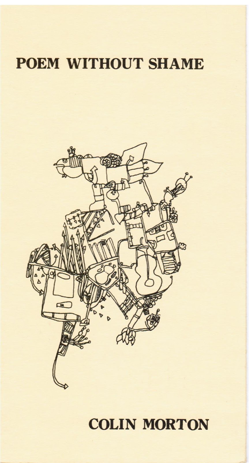 Broadsides1982 – Colin Morton, “Poem Without Shame” (8.5 x 14, 3-fold); art by Carol English1983 – Susan McMaster, “Seven Poems” (8.5 x 14, 3-fold); art by Claude Dupuis1983 – John Bell, “The Third Side” (11 x 17, 4-fold); art by Suanne Rogers1986 – Chris Wind, “The House that Jack Built” (11 x 17 poster)1989 – Richard Kostelanetz, “Openings” (8.5 x 11, 3-fold)