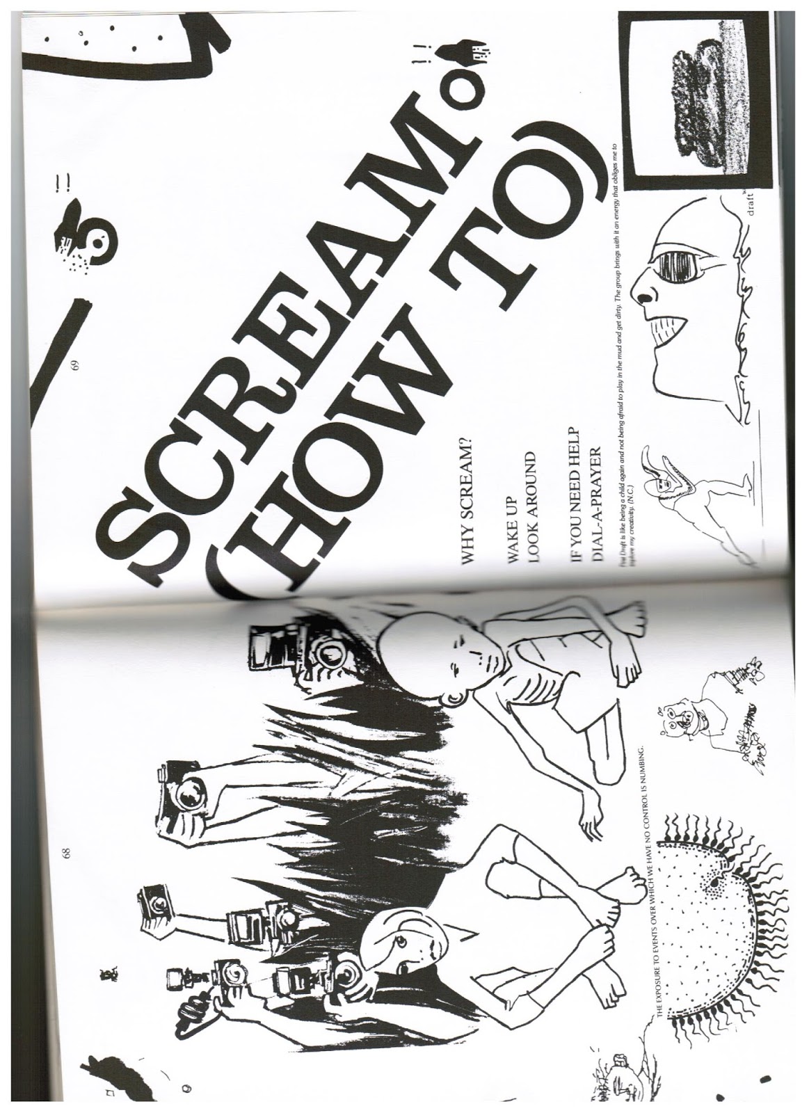 In addition to all that, I had weekly meetings over coffee and beer with First Draft, a collective of writers, musicians and artists who closed out Theatre 2000 near Byward Market in 1983 with a multimedia performance that including my recital of “Poem Without Shame,” “wordmusic” collaborations and others. The following year, 1984, saw First Draft’s third annual group show appear in the form of a book from Ouroboros – an artist’s book designed by Claude Dupuis of Ottawa. Dupuis filled every corner of every page with visual information, leaving the printer literally no margin for error. The result is The Scream, by far the most ambitious piece of book-making Ouroboros attempted. Smaller projects did use the visual resources of Ottawa’s print shops, and my own desktop publishing efforts. Visual poetry predominated in postcards, posters and chapbooks.