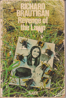 God knows where our original copy of Revenge of the Lawn: Stories 1962-1970disappeared to. I suspect my ex-wife still might have it somewhere on her bookshelf, or perhaps it was returned to Sabrina when we were still teenagers. My replacement copy is larger than the Pocket Book edition, a Picador paperback with a cover I'm not entirely fond of. It has a version of the original book cover, with print of the photo of Sherry Vetter of Louisville, Kentucky, sitting with her chocolate cake, set out on a lawn, the photograph covered in honeybees. It just isn't the same. Still, Revenge of the Lawn: Stories 1962-1970 is important to me because of how long I lived with it, reading and rereading it; important, possibly, because of where I went next, as a direct or indirect result. Through Brautigan, I got my first sense of just how short a story could be, how boiled down fiction made such a stronger effect than wordier prose. Through Brautigan, realizing novels could be written much the same way, each little section adding together into something larger, which is far less scary at the beginning than trying to write a whole novel. It was the first of his books that I read, before realizing I wanted to learn from them all, long before I wrote the poetry collection The Richard Brautigan Ahhhhhhhhhhh (Vancouver BC: Talonbooks, 1999), or the work-in-progress “A Short Fake Novel about Richard Brautigan.” Perhaps it's important because it reminds me where I've been, and what I no longer have.