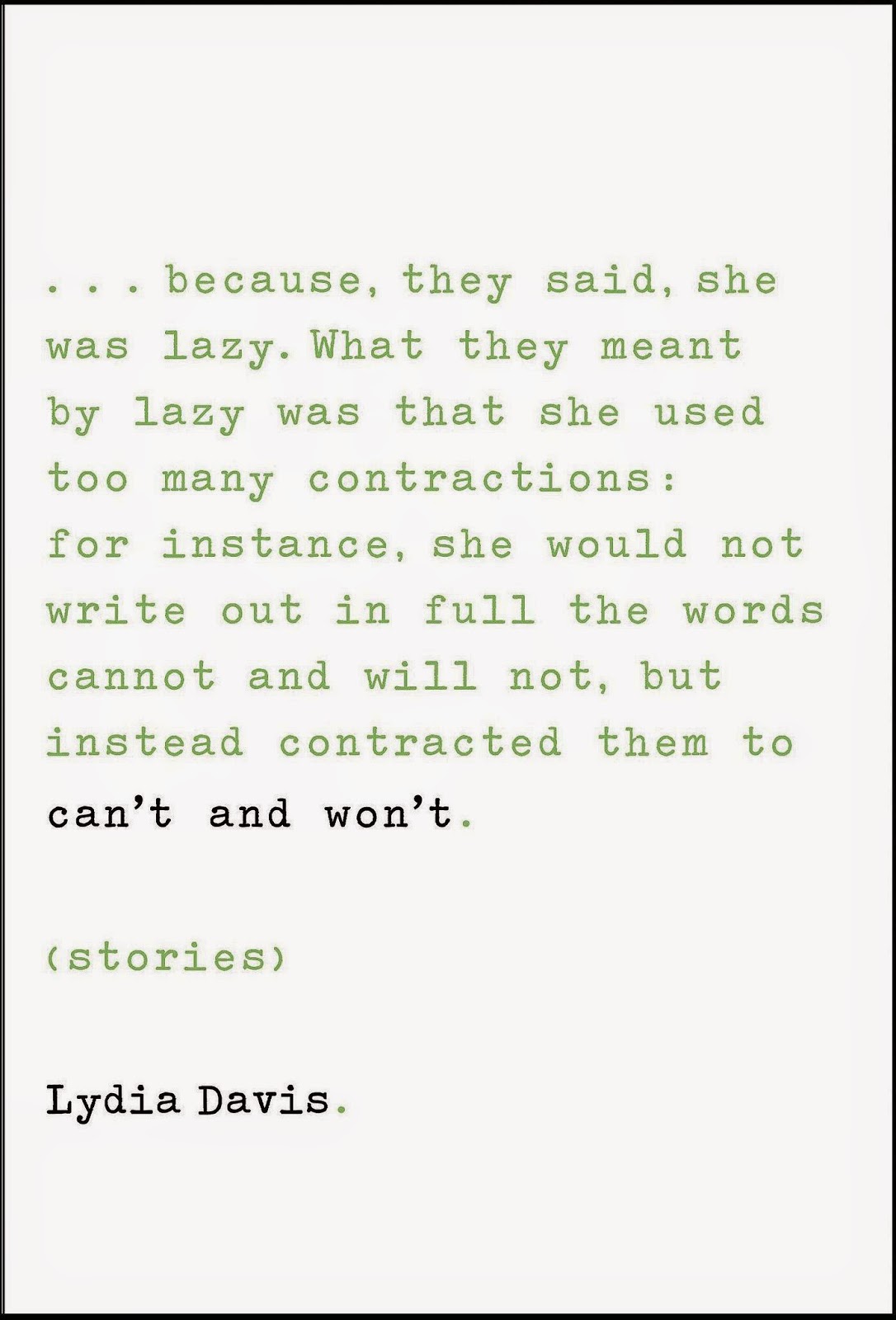 Lydia Davis, can’t and won’t (stories)