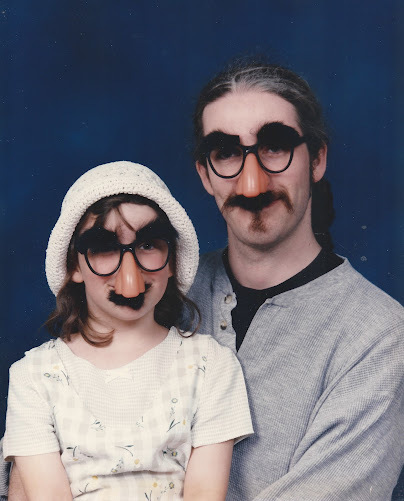 My eldest child turns thirty-three years old today! Happy birthday!Here's a photo we got at the Bay Photo Studio on Rideau Street when she was around seven or so (a photo I have up in my office). I had a coupon for a free 8x10, so thought this would be fun to do as a session. Kate's mother politely declined to participate, and held our coats instead. When my mother heard we were doing photos, she paid for extra copies for herself, although when she finally saw the finished product, she was horrified. I don't think she ever distributed any of her copies.
