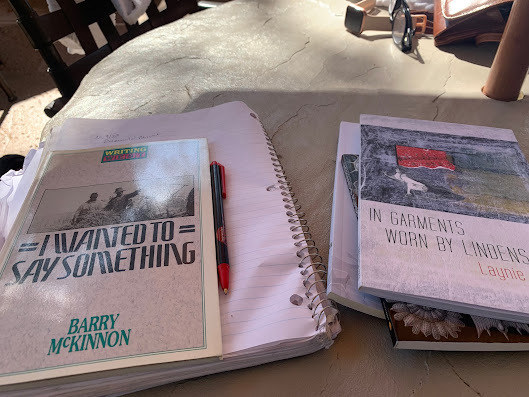 Saturday,November 4, 2023: We had a quiet day, mostly at the condo space. I spent some time with notebook, and books by Laynie Browne, as well as my copy of Barry McKinnon's i wanted to say something, which I'd brought to poke through. I made various notes, some of which I'm still processing, adding to. I am still thinking upon. Christine and her mother made plans.