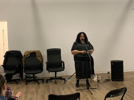 Ilove giving readings and speaking my work out loud. There’s bodies and voicesand bloodstreams and smells and laughter and coughing fits and rustlings anyawns, and eyes closed and walking out, and street noise, and mic static, etc. which I find so exciting! It’s more and less intimate at the sametime. The work gets changed in acollective listening space. I don’t know how to describe it but somuch happens to the poems in a room when read aloud to others.