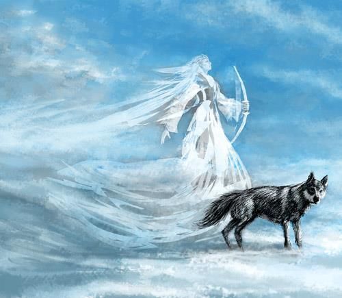 Oðinn says, “I desire you forever by my side, Skaði, my goddess, giantess, huntress and snow-stealth specialist. Will you be one with me – my Snow Queen? If wished I will break the rings binding you to Njörðr.”