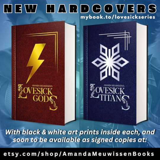 At last, I have finalized and made live the new hardcovers for my superhero enemies-to-lovers Lovesick duet, Lovesick Gods and Lovesick Titans, with black & white art prints inside each of the paperback cover illustrations.