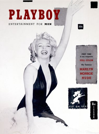 (Image credits: (Most of these links also feature interesting articles about the end of the traditional Playboy.) The March 2016 cover is from the Mirror website. The iconic October 1971, a groundbreaking image featuring African American model Darine Stern is from 680 News. The ever amusing College Issue, October 2015, is from BBC News. The rabbit head is from Miss Open. The December 2015 cover, one of the last of the old school Playboy, sniff, is from Pixhost via DL-Home. The December 1953 cover — the very first — is from USA Today. Poignantly, Marilyn now seems to be waving goodbye to Playboy.)