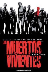 (Image credits: The front cover shot is from Amazon. The front & back cover is from AVX Search. The Spanish cover is from Good Reads. The title has been I think inaccurately and rather boringly rendered as The Living Dead. The Walking Dead in Spanish would actually be Los Muertos Caminando.The shot of the kid surrounded by zombies – gulp — is from How to Love Comics. It isn't part of the volume under discussion, but I just couldn't resist it. Also, this site has a very useful essay about the comics and where to begin reading them. Book 1, it turns out.)