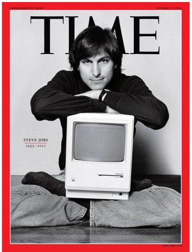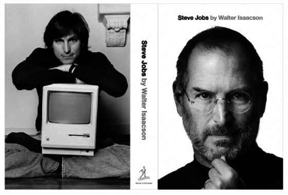 (Image credits: The standard cover shot with the black and white photo by Albert Watson is from Wikipedia. The variant, more smiley cover, also by Watson, is from Simon & Schuster. The Time magazine cover is from Fortune. The Norman Seef black and white head shot, used on a Rolling Stone cover, is from iPhone Savior. The front and back cover shot is from iMore.)