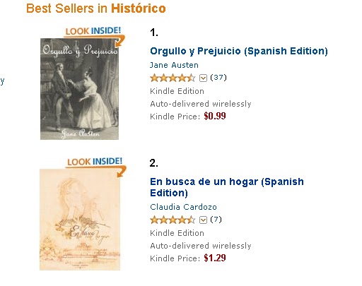 Quizá sea un poco tonto hacer una entrada por esto, pero me ha emocionado muchísimo darme hoy con la sorpresa de que mi novela, En busca de un hogar, se encontrara ubicada en el segundo lugar de Best Sellers en la categoría de Romance Histórico, y más por este hecho en sí, porque estaba un lugar debajo de mi escritora y mi obra más querida, Orgullo y Prejuicio, comprenderán que no podría estar más emocionada.