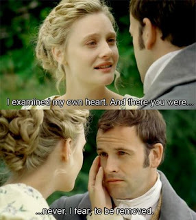 Visto desde aquí y tras leer lo que llevo escrito, veo que sí, que le he tomado cariño a Emma, creo que en gran medida gracias a la miniserie de la BBC con Romola Garai que recomiendo encarecidamente por ser de las adaptaciones más bonitas de una obra de Jane que he visto y también, todo hay que decirlo, porque su historia con Mr. Kinghtley es tan encantadora que una romántica como yo no podría resistirse.