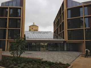 The building is beautiful with two small towers, one each for pure and applied math, and a common room joining them. The downstairs, where the talks are being held, is separated from the tower by its own glass dome, so, I was told, that the noise of the students don't disturb the great thinkers above.