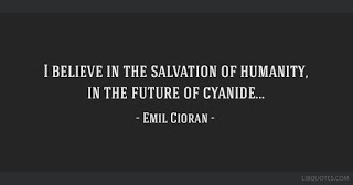 Second, I think being a true, fully consistent pessimist is not only hard but almost impossible. It's really a tough position to hold, without appearing hypocritical. Martin Heidegger has argued that human beings, as beings-in-the-world, exist mostly in a state of inauthenticity. That is, simply put, they do what others do, what They do, what is done. We mostly live in the inauthentic human soup of The They, we do what's expected of us in a zombie-like fashion. We keep busy, plan for the future, always ahead of ourselves, absorbed by some job or another. This goes on, Heidegger argues, until our awareness of our own death hits us and our knees buckle. No one else can die in our place, we face death alone. This gives us anxiety, and only in this state of fear of death do we become authentic, because death forces us to see our lives as our own, and no one else's. However, Heidegger argues, humans don't linger in this state of anxiety for long. Eventually, they reach a decision about the trajectory of their lives and then succumb again, willy-nilly, to the force of The They. The They is our home. Authenticity is just a bad trip we normally forget about. Now, the options of what to do with our lives are provided on the public market as predefined social roles. Tired of your job? Go back to school. A recent injury doesn't allow you to have a career in hockey? Try an office job. You don't know what degree to aim for? Try traveling around the world to find yourself. It follows that, like most of us, the pessimist cannot sustain the state of anxiety for long. Eventually, he'll submit to the power of The They and just live like others do. Like in the case of Cioran, he gave up on watching the hours go by and became a famous writer. He was also a voracious reader. In the same vein, Ligotti points out Lovecraft's interest in architecture. Schopenhauer was a monarchist and professional Hegel hater. My point is that despite the dramatic posturing, most pessimists are just like the rest of us, subject to the force of The They, they live like most of us, enjoying some things, hating others. And if they de facto take part in this inauthentic communal life, then what right do they have to say life is no good? Isn't that a bit hypocritical? Like some emo youth with a Nocturnal Depression t-shirt shopping in the organic section and complaining about the poor selection or an antinatalist trying to become a nurse. This schizoid Dr. Strangelove-type appearance is not a good look for the pessimist. It raises doubts and questions. Moreover, pessimists can't kill themselves either because only optimists kill themselves. Suppose then that they decide to live like pariahs, losers, at the margins of society? After all, Cioran famously claimed: "Only one thing matters: learning to be the loser." However, this, on the face of it, is a project, something to strive for. Like being the town drunk, being the loser is a social role, still in the social space of The They, though, admittedly, on the margins of that space. Cioran was well-aware of this challenge the true pessimist faces, which is one of the reasons he turned down a handful of prestigious literary awards claiming that one cannot write a book like The Trouble With Being Born only so one can cash a literary prize.