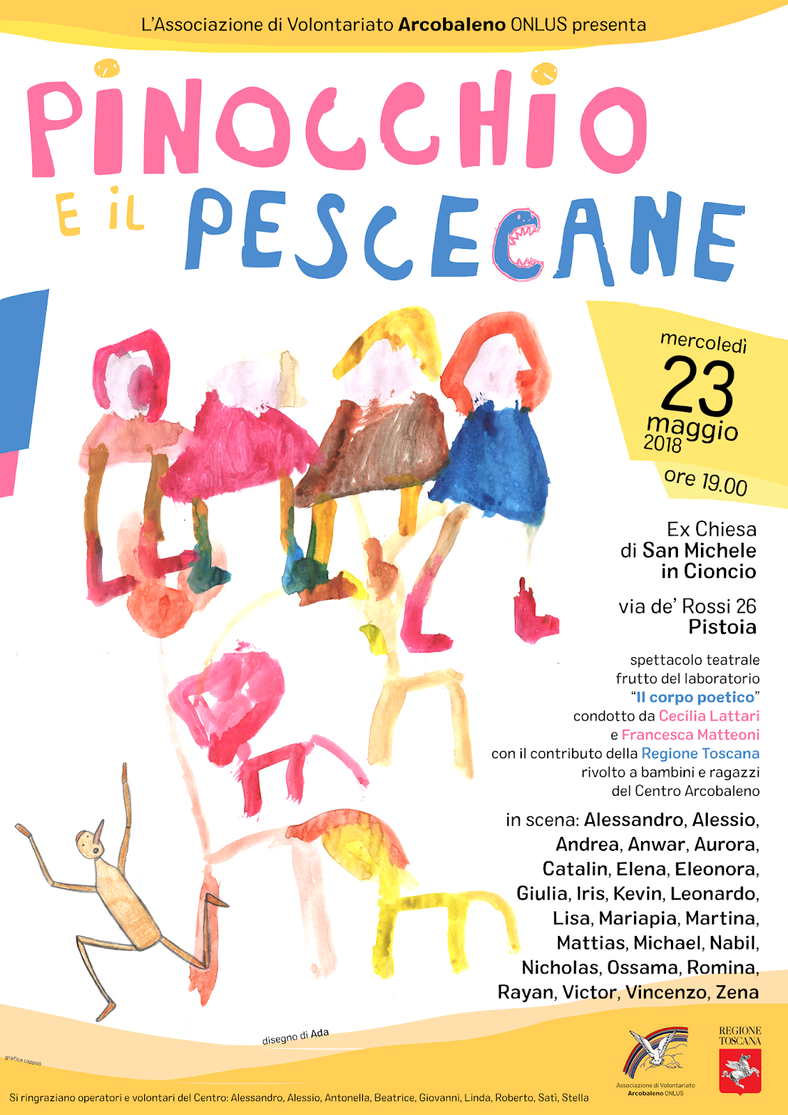 Lacomunità che viene è un festival diffuso che si svolgerà a Pistoia, interessando soprattutto le aree periferiche e collinari, fra la fine di settembre e la metà del mese di ottobre. Gli incontri, i laboratori, gli eventi avranno come tema principale il racconto di esperienze comunitarie e inclusive, a partire dallo sguardo artistico sui territori e su coloro che vi risiedono o si trovano a transitarvi. Il nome è ispirato dall’omonimo libro di Giorgio Agamben e, come in quel testo prezioso, si riferisce a una comunità libera, aperta. Una comunità in attesa di essere, eppure già viva e presente. Come associazione Palomar abbiamo pensato questo festival quale naturale evoluzione di Leggere la città, radicandolo tra i luoghi dove già si porta avanti un lavoro di tessitura sociale e culturale, grazie ai patti di collaborazione per la gestione e manutenzione dei beni comuni. Per questo abbiamo scelto di cominciare dalla periferia urbana delle Fornaci, realtà complessa e abitata da anime diverse, per poi spostarci verso la Valle delle Buri, fra i paesi di Santomoro, Iano e Baggio, i cui patti territoriali si centrano proprio sulla cultura. Crocevia scelto è invece il Circolo Arci Bugiani, dove si porta avanti una proficua interazione con il quartiere e le scuole. Abbiamo chiesto ad artisti e operatori pistoiesi di unirsi a noi, per le “comunità transitorie”, ovvero i momenti laboratoriali dedicati a ragazzi e adulti, per lavorare e giocare insieme. Come saranno le nostre comunità? Intanto ci mettiamo in cerchio a immaginare e ascoltare, ci mettiamo in cammino per esplorare, preparando il terreno di accoglienza per l’umano qualunque che viene, con la sua storia e il suo sogno, portatore di un dono.