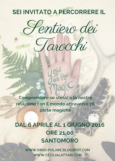 Mercoledì 4 maggio Tarocchi e Incantesimi (Francesca)Mercoledì 11 maggio Tarocchi e Erbe (Cecilia)Mercoledì 25 maggio Carte Amuleto (Cecilia)Mercoledì 1 giugno Tarocchi e Oracoli (Francesca)
