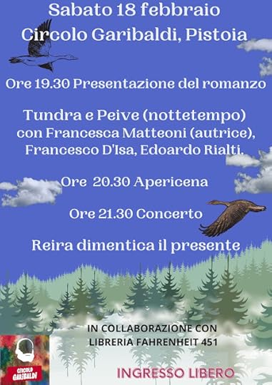 Nel frattempo ho creato una playlist con la musica che gira dentro e fuori dalla storia, viaggiando per il nord, la radura e la città. Ho preparato la locandina per la prima presentazione che avverrà a Pistoia, al Circolo Garibaldi sabato 18 febbraio e sarà seguita da un'apericena veg e un concerto. Intanto guardo la copertina e penso a quanti anni questa storia è stata con me, prima di trovare la sua forma. Esseri piccoli, animali, donne sagge ma non troppo, fratelli perduti, orfani - i miei mondi, la capacità di dimenticare per sopravvivere, di ricordare per tornare agli affetti.