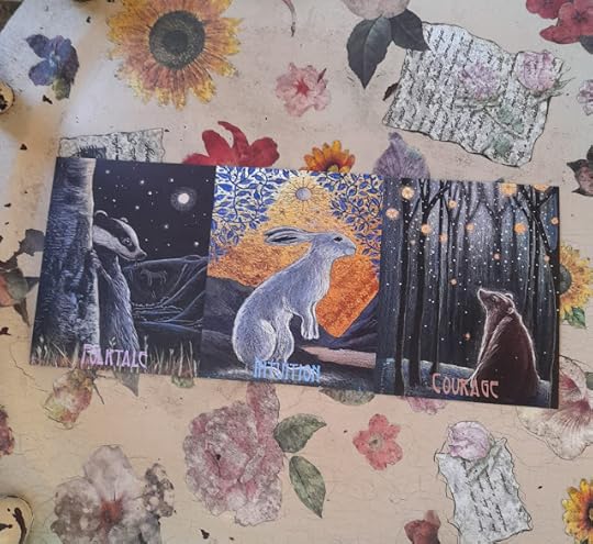 Scelgo tre carte dall'oracolo Folktails di Hannah Willow. Tasso, Lepre, Orsa. Fiaba, Intuizione, Coraggio. Riprendere il filo della mia storia, dove i pezzi delle tante vite che attraverso, che mi hanno sostenuto e lasciato andare, compongono il canto che mi pone nel mondo. Non sempre le sue note sono liete, ma con ostinazione mi tengono qui. Cerco di affinare i sensi, oltre ciò che è immediatamente riconoscibile. E infine torno al vecchio coraggio, il sentimento che consideravo più importante da bambina. Rifletto sulla scrittura che dovrò riprendere a breve, uscendo dalle pagine meramente biografiche, dal resoconto dei sogni dove incontro mio padre e cerco il tempo che ancora non mi sono data per questo lutto.