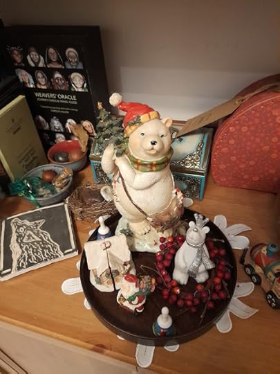 Rientro a casa nel pomeriggio e viene presto buio. Cerco conforto nelle anime natalizie che riemergono per abitare con me fino a gennaio - le decorazioni sull'albero e quelle sparse un po' ovunque. Simboli che ogni anno si caricano della magia della fine, mi ricordano che nonostante tutto sono ancora in dialogo con la mia memoria, una fonte di consolazione e incantamento, una possibilità di spezzare la routine, la fretta, lo scandirsi del quotidiano, per riprendere il filo, la trama del vivere autentico e segreto.