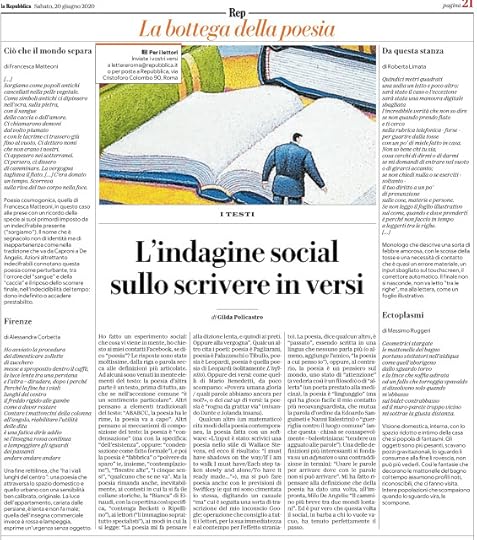 Poi - sulla Bottega di Poesia di Repubblica, a cura di Gilda Policastro, escono alcuni miei versi anticipatori di un libro che spero veda la luce nel 2021. Ringrazio e spero sia di buon auspicio! Ecco: