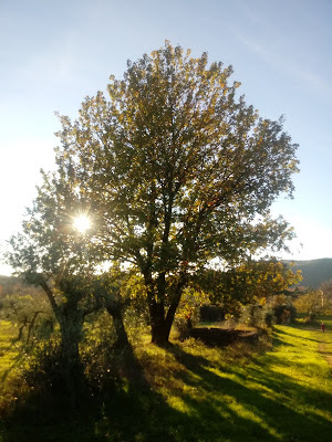 Il posto non è lontano dalla mia nuova casa. Attraverso la strada principale, supero un grande rudere, risalgo fra le felci e passo per una macchia di querce che segna il limite del campo su cui mi affaccio. Davanti a me, un cipresso solitario. Sulla soglia che sto varcando, querce e corbezzoli. Fiori azzurri di cicoria. Ghiande senza più il loro cappuccio sparse fra le foglie sul terreno. Il campo è in parte coltivato, ci sono olivi, si intravedono case sui margini e sulle colline. Alla mia sinistra una quercia si affaccia su una vasca in pietra per l'acqua, ormai completamente diroccata. Non so quale fosse il suo uso. Serbatoio, lavatoio. Ma è lì che mi dirigo, dove la quercia incontra il segno umano più visibile e il segno del tempo che sappiamo riconoscere. L'acqua nella vasca rimanda un'altra quercia che cresce verso il basso, con le sue radici immaginarie nell'aria. Gli alberi specchiati nell'acqua, suggeriscono un altro mondo che sembra facile da raggiungere: basta sporgersi e smuovere la poltiglia di fogliame autunnale che ancora per un po' resiste a galla.