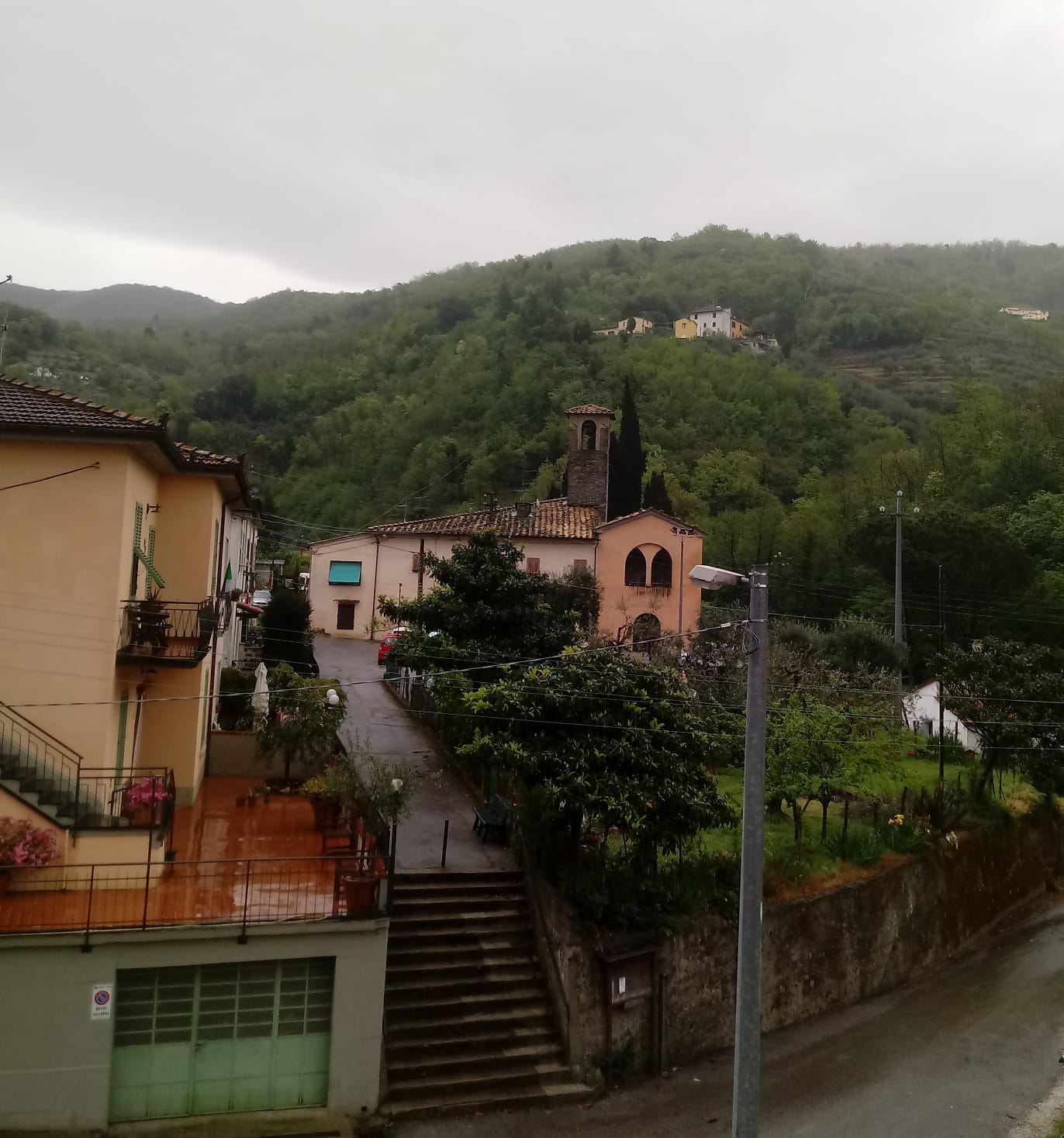 La pioggia mi riporta sempre a una dimensione intima, dove ciò che di solito sta nascosto può fluire tranquillo, senza paura. Dovrebbe esserci una stagione apposita per lei, la stagione della pioggia, che si ripete attraverso i mesi e fa il cielo vicino. Scatto la solita fotografia dalla finestra, verso la chiesa di San Silvestro e là dietro la Bure che si addentra nella boscaglia.