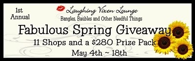 The Fabulous Spring Giveaway is open worldwide. 1 winner will win the Prize Pack. You can enter via the Rafflecopter below. Please visit the Laughing Vixen Lounge Blog and the Main Giveaway Post HERE to see the full prize list, participating shops and daily features during the giveaway.
