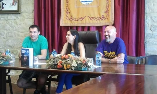 As presentacións que imos acometendo van a mellor. Non sei se porque, cada vez, formamos un equipo máis coordinado ou, sinxelamente, porque a xente que o conforma é estupenda e realmente gozamos cada encontro. Tamén é certo, cando menos no meu caso, que teño máis clara a mensaxe que quero transmitir aos nosos asistentes e comezas a pensar que non só tés que contar unha historia nos teus libros senón que, ademais, temos que animar á xente a achegarse aos nosos contos e que vexan a diversión e a vertixe sen control que pode ser botarse a voar nunha das nosas aventuras.