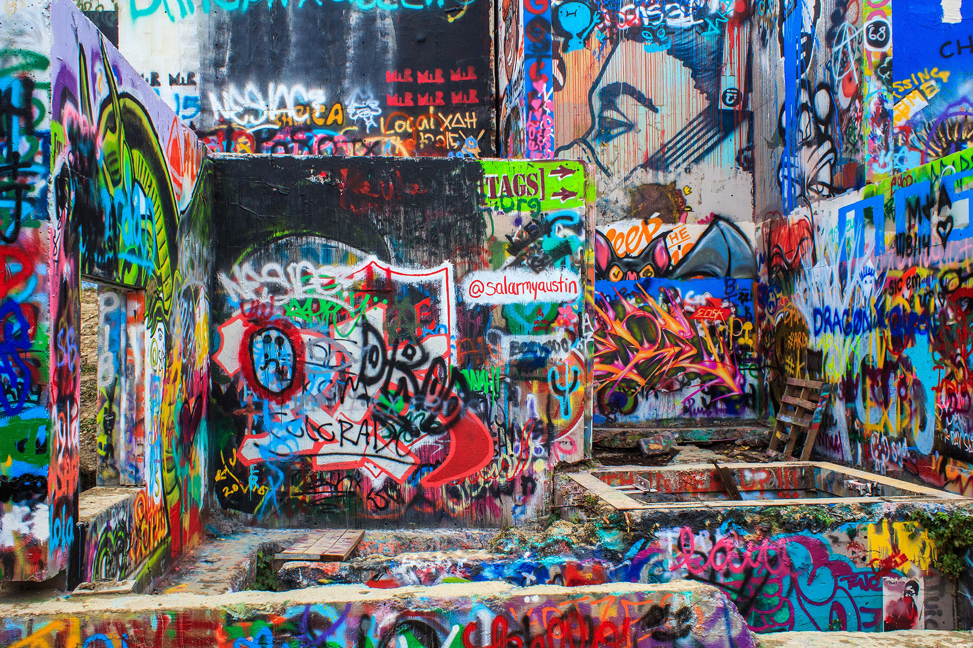 Instead of making a big hub-bub about the graffiti the owners of the property declared it an art gallery and now people from all over show up and use spray paint to make crazy works of art. It’s truly a wonder to see and if you are ever in the Austin area you need to check it out!