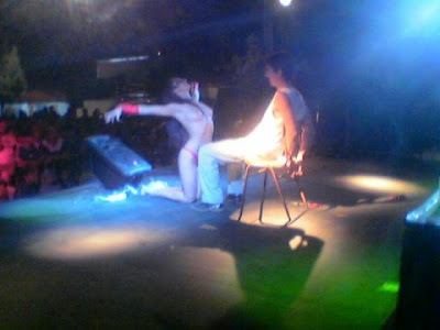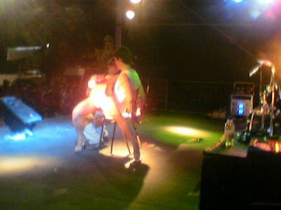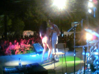 E começa o número, despindo-se de um fato que lhe assentava na perfeição, com uma lentidão exasperante, até acabar essa primeira música, altura em que, já apenas vestida com uns enormes saltos e um fio dental, vai buscar o Peles, que, pela sua expressão parecia ter ganho o euro-milhões e torturou-o de forma absolutamente cruel e desnecessária, começando por se sentar ao seu colo, esfregando-se nele e levantando-se em seguida, pondo-se à sua frente, de costas para ele, e fazendo-o despir-lhe o fio dental enquanto espetava aquele garboso rabo na sua cara!