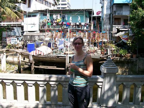 Top: Nicky poses by a ‘houseboat’ - food for thought…