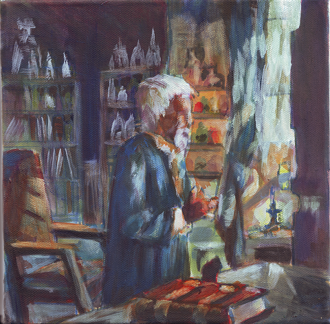 Solon stood in his tower, considering the strangely coloured liquids in strangely shaped receptacles. The great tome sat on his table, open to the page of the spell he was to cast. He read the first few lines from the spell, then reached up and took two full jars off the shelf, along with an empty one. Taking a deep breath, he began to chant, while slowly pouring the contents of the two jars into the third.