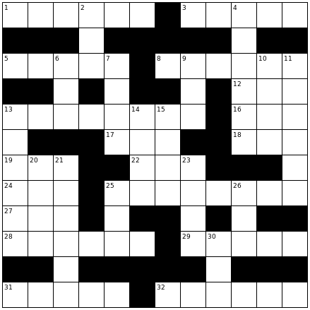 Do you like crossword puzzles? Well, you'll love this one! I've decided to try something new this month. Normally, my crossword puzzles are released on the last Tuesday of every month, and the answers are released on the first Tuesday of the following month. The first person to send me the answers before then receives a mention on this blog. Recently, though, I've begun thinking that a week is a bit too short to expect anyone to answer it in. Therefore, this month, you will have three whole weeks! So print out this puzzle, solve it, and send me the answers via Facebook, Twitter, or Google Plus. The answers will be posted on Tuesday, 22 April 2014, and if yours are the first correct answers I receive before then, you'll be immortalised on this blog! So without further ado, here it is. Have fun!