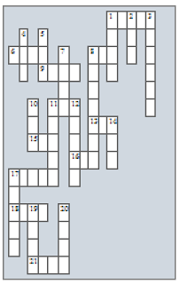 Happy New Year, everyone! I thought we'd start 2013 off with a bang, and have a little bit of fun with this one. Here's a crossword puzzle I put together. When you think you have the answer, tweet me @GrahamDowns. The first person to get all the answers will get a mention from me, and I'll post the correct answers on this blog. If nobody gets it after an extended period of time, I'll post the answers here, and I win! :) Here goes:
