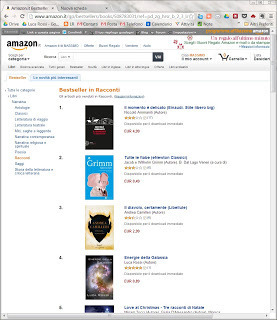 Energie della Galassia, il mio primo libro, pubblicato appena tre giorni fa, il 21 dicembre 2012, è quarto nella categoria racconti e quinto in quella fantascienza su Amazon Kindle.