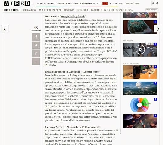 Leggo e rileggo... è tutto vero! Controllo l'url, credendo si tratti dello scherzo di un amico. È proprio http://www.wired.it/. Che sia un fotomontaggio? No, sono proprio su Chrome, sul sito di Wired. F A N T A S T I C O!! Ed il mio nome compare in compagnia di molti dei miei miti/colleghi: Rita Carla Francesca Monticelli, Riccardo Pietrani, Chiara Gamberetta, Vera Q, Amabile Giusti, Alex Girola, Antonio Fanelli, Michele Orti Manara e Deborah Ameri.