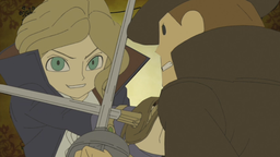 Back when I first heard about the series, I wouldn't have expected sword fights. Turns out our gentleman archaeologist puzzle master is also an expert duelist.