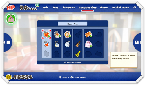 The gameplay section introduces the confetti feature (which is basically a confetti version of painting stuff in Color Splash), mentions that Toad Town will gain new shops and features as you rescue more Toads (and that sounds cool; I like the idea of Toad Town as a hub area), the combat system and boss fights, and then… equipment.