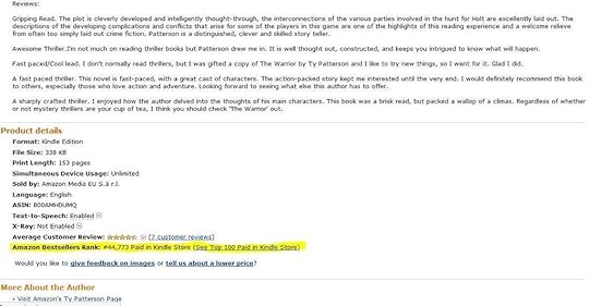 T-Shirt Ripping, Chest Beating, Double Fist Pump as The Warrior ranks at #140,880 on the Amazon Best Sellers Rank (Paid in Kindle Store)