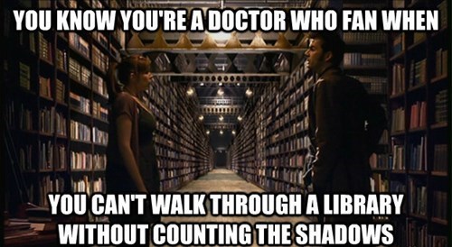 On Wednesday I was picking up my boys from school, and Boy 2 pointed into a dark hallway."Do you know what I think is down there?" he asked."No, what?" I said.He gave me a knowing look. "Vashta Nerada, that's what."It's times like those that make me such a proud geek mom.