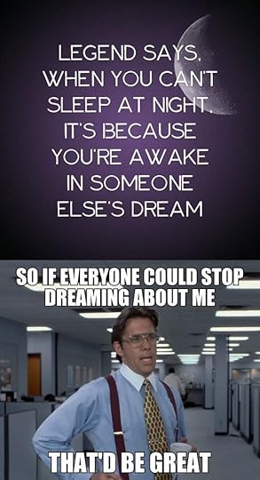 All week long I haven't slept. Well, I sleep, then wake, then sleep, then wake, then sleep, then wake... You get the idea. Someone sure is enjoying my dream-state company.